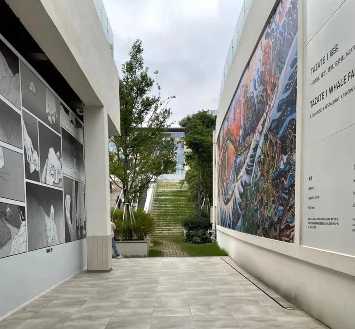 艺术空间位于整个项目正中央,以美术馆作为设计模板,内部的空间规划和动线是极简主义的几何风,用高低起伏的楼梯制造错落感。
