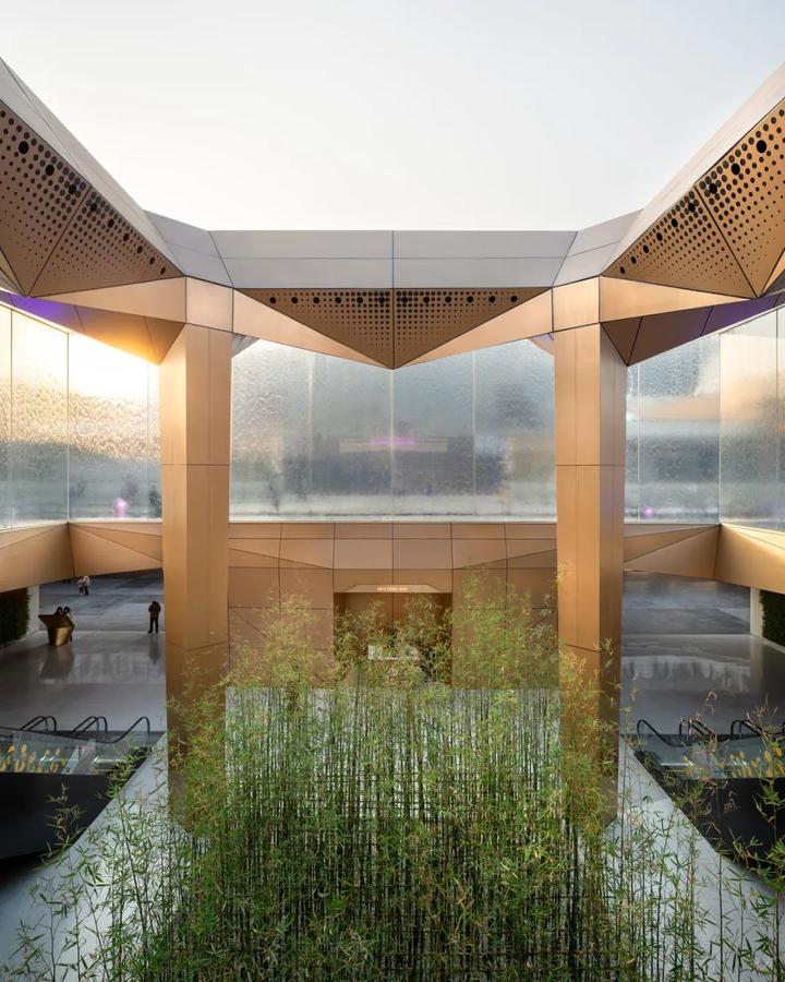 如设计中蕴含的“平行世界”隐喻,在本案中,有许多并存的体验等待发现——从地上的公园景观处进入,以织锦为灵感串联起33处自然景观,让顾客的每次到访,都有新的路径和独一无二的体验。项目坐拥开阔的地面生态景观,而地上的公园和下沉式的建筑空间是两个相连接的世界。由上至下,仿佛跃向纵深的峡谷——零售、餐饮生活方式、艺术与体验持续而充满变化性地出现,同时亦由连贯的设计主线串联。在同一生态景观下,多元和可能性成为了现实。