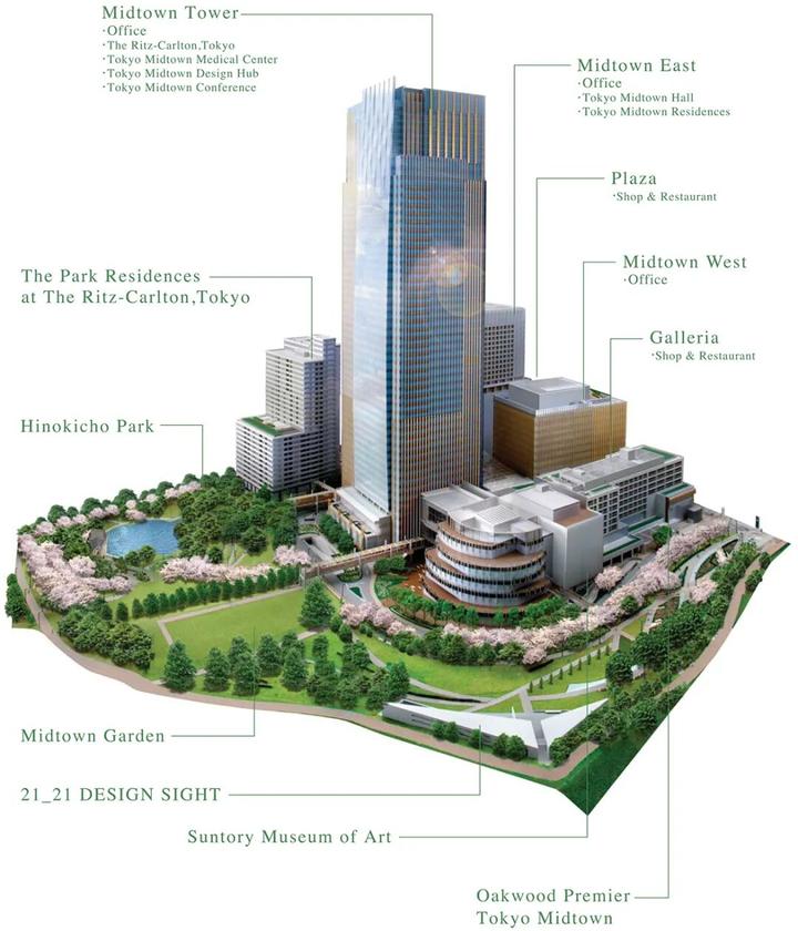 经过数轮研讨,最终三井将“垂直型公园都市”作为六本木中城建筑群落、庭院景观、以及环境氛围的设计主旨。