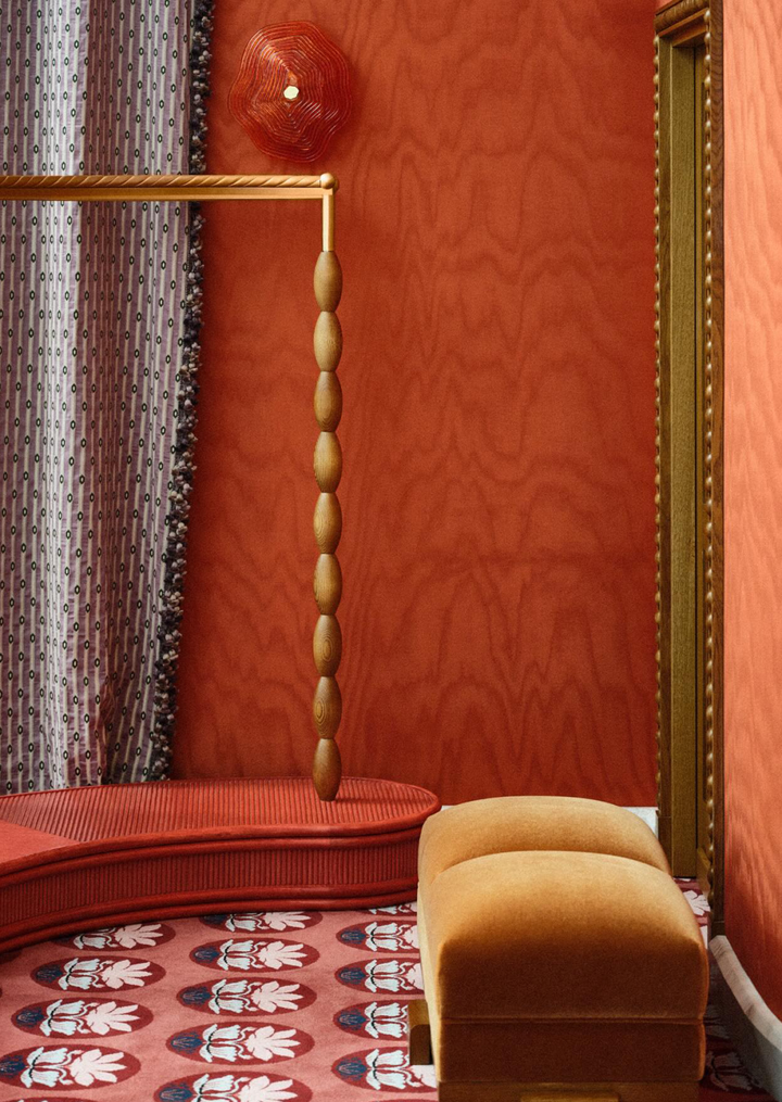 Le Boudoir 的设计散发出精致与优雅的氛围,仿佛进入了一座充满精美艺术品的博物馆。整个区域的设计理念是将高级定制的永恒优雅与古典闺房的氛围相结合,同时融入精选当代艺术,展现出其独特的现代感。