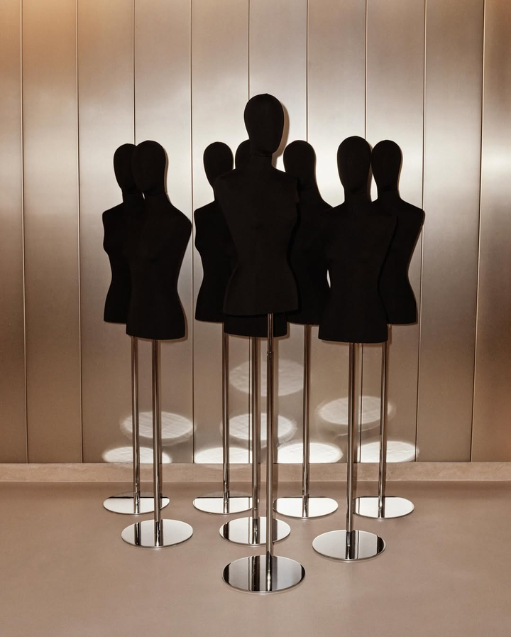 金属饰面、和谐的色调和独特的人体模型共同塑造出一个充满艺术气息的空间,让人仿佛走入了一场视觉与情感交织的艺术展。