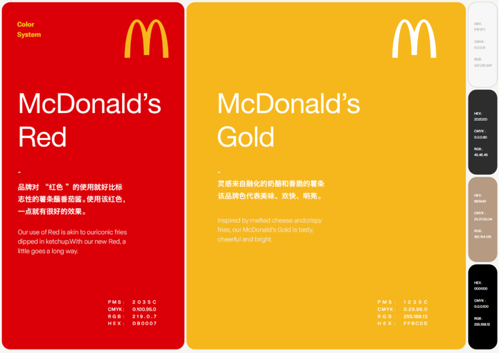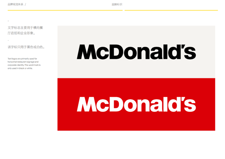 品牌色彩:麦当劳以红色和黄色为主色调。红色代表活力、热情和食欲,能够吸引消费者的注意力并激发其消费欲望;黄色则象征着快乐、温暖和友好,给人以愉悦的视觉感受。两种颜色的搭配形成了强烈的视觉冲击,进一步强化了品牌的活力与亲和力,使其在众多竞争对手中脱颖而出。