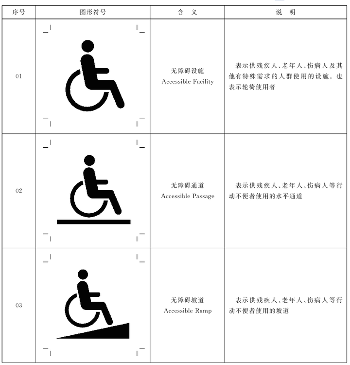 中华人民共和国住房和城乡建设部发布的《无障碍设计规范(GB50763-2012)》中,将无障碍标志系统分为以下三类: