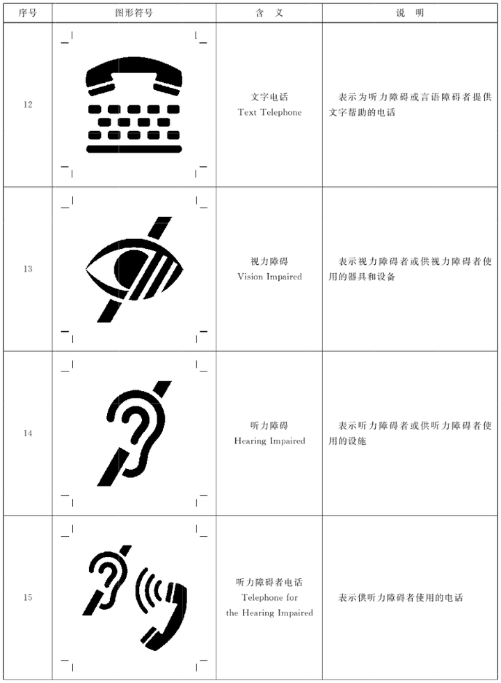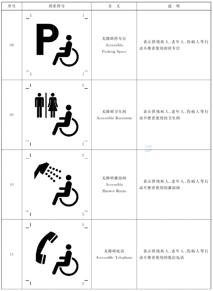 2021年国家标准化管理委员会颁布的《公共信息图形符号 第9部分:无障碍设施符号》中规定: