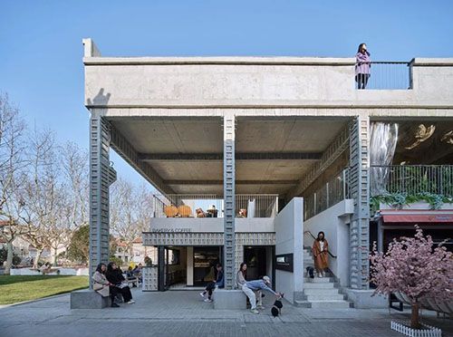 项目在引入体验式的商业、文化、艺术业态的基础上,同时将基地内的两处蕴藏着城市文化记忆的文保建筑群——海派石库门建筑慎余里与上海唯一一座官制妈祖建筑天后宫相融合,打造开放式的商业空间与公共式的城市中央公园。以慎余里划分的东里室内部分设计了仿榫卯结构屋顶,以天后宫划分的西里商业内部的房梁则模仿石库门木格栅式。