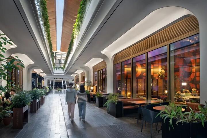 在成都SKP,如设计中蕴含的“平行世界”隐喻,有许多并存的体验等待发现——从地上的公园景观处进入,以织锦为灵感串联起33处自然景观,让顾客的每次到访,都有新的路径和独一无二的体验。宏伟壮阔的成都SKP坐拥开阔的地面生态景观,而地上的公园和下沉式的建筑空间是两个相连接的世界。由上至下,仿佛跃向纵深的峡谷——零售、餐饮生活方式、艺术与体验持续而充满变化性地出现,同时亦由连贯的设计主线串联。在同一生态景观下,多元和可能性成为了现实。