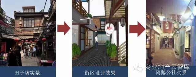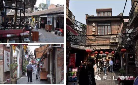 田子坊以上海旧街巷石库门为基本形态,商业面积近3万平方米,商铺总数426家,其中创意类零售店铺占比约65%,餐饮、水吧等创意类餐饮及娱乐业态店铺占比约35%,商铺平均租金65元/㎡/天,是全国商业运营最为成功的创意文化商业区。