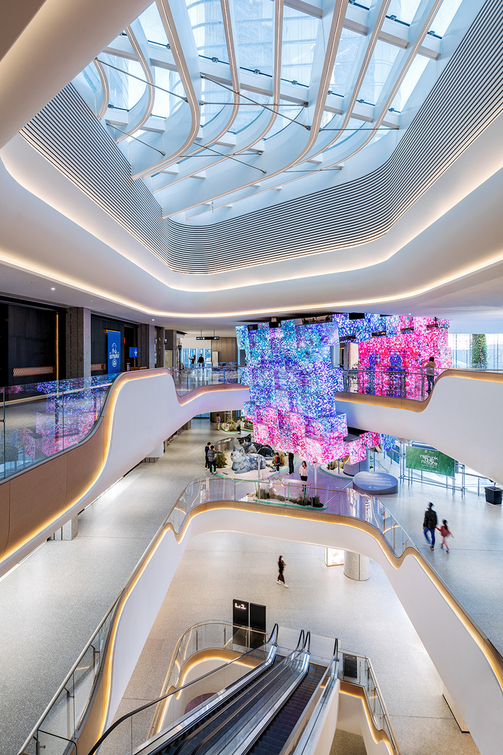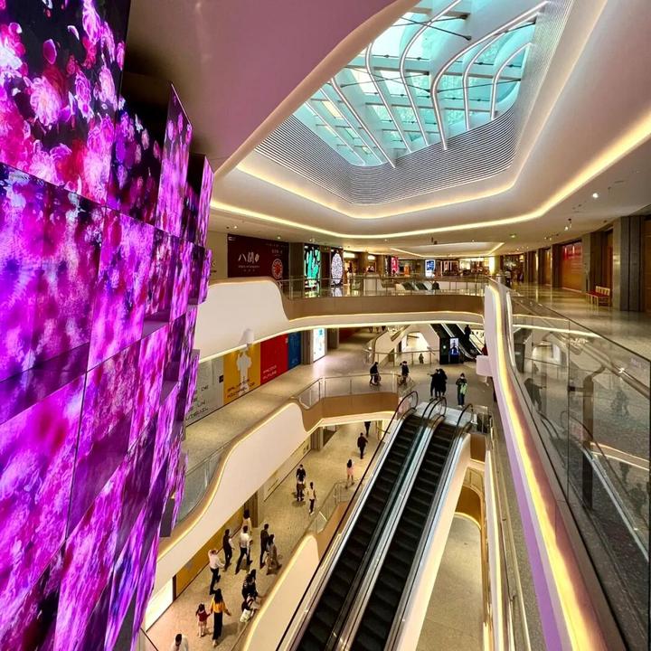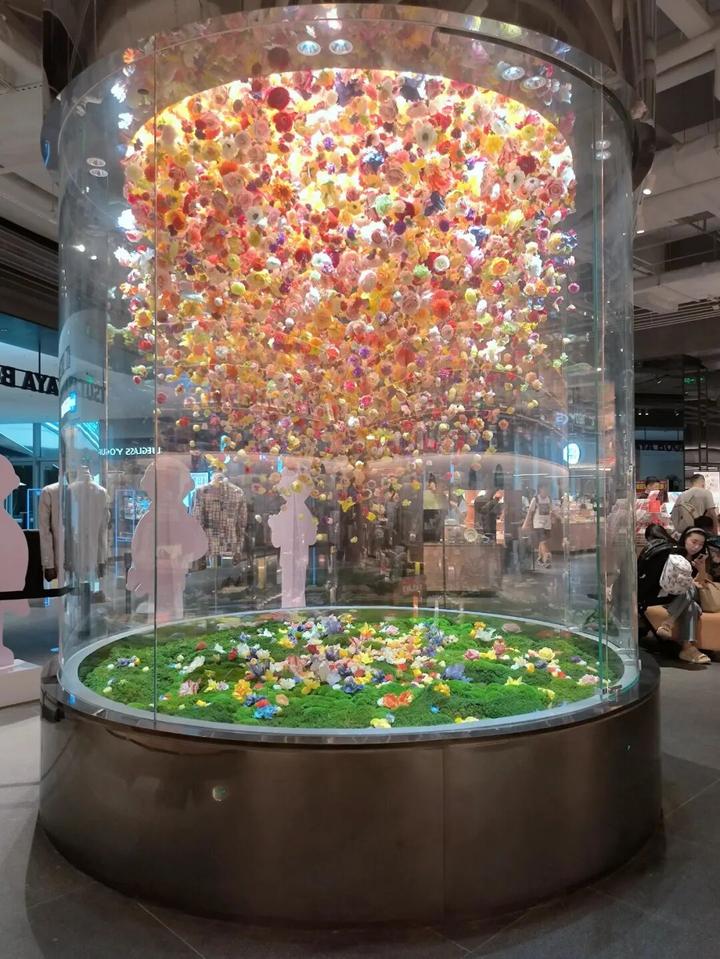 这个商业从建筑的角度来说没有很特别的设计,但内部美陈、艺术装置上是非常不错的,将艺术与时尚结合得非常好。