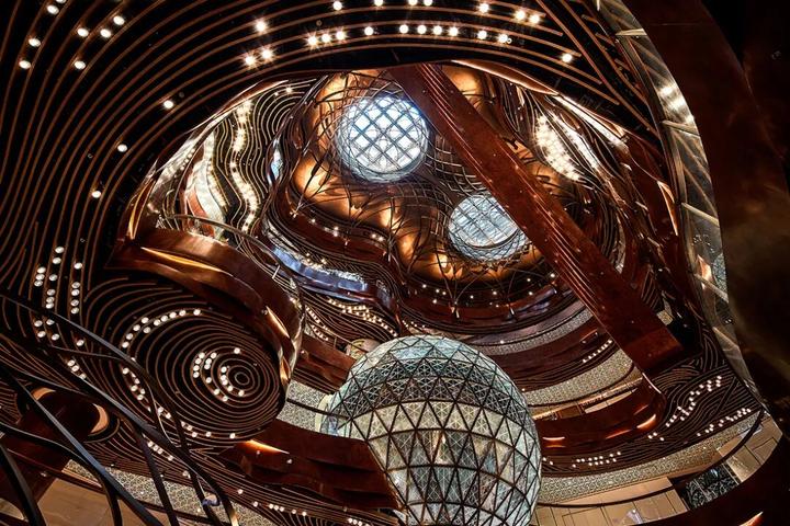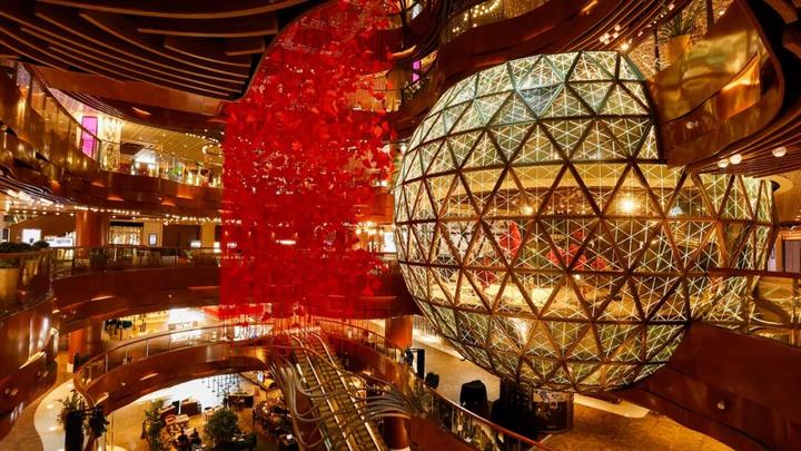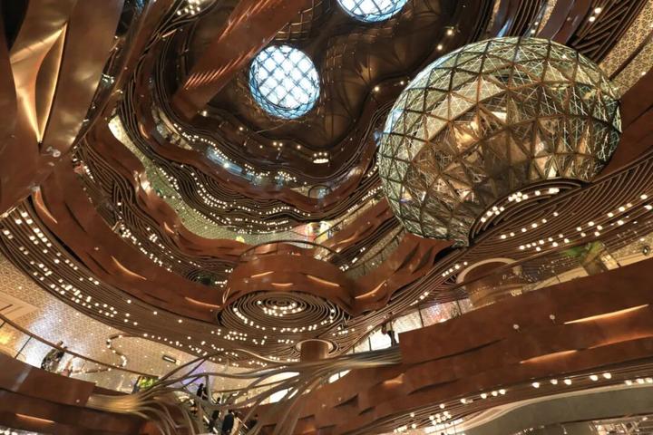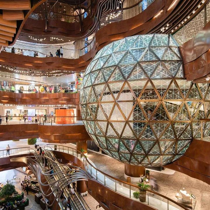 “The Gold Ball”:K11 Musea的大堂中央设有一座巨大的球形装置艺术“金球”,这是商场的标志性设计之一。这个艺术装置不仅是视觉中心,还常常作为特别展览和活动的场地。