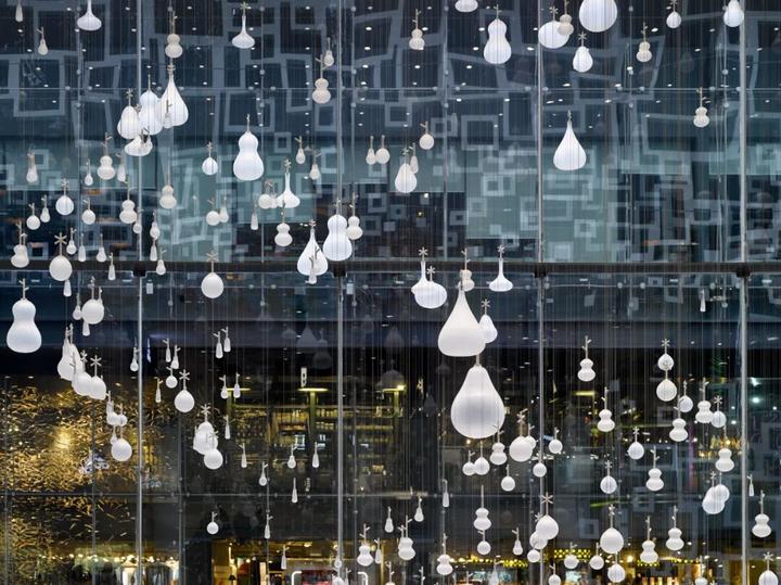 Emsphere 内设有多个大型艺术装置,将购物体验与视觉艺术紧密结合。这些艺术作品不仅装点了商场的公共空间,还通过与品牌的结合,增强了顾客的购物体验。例如,商场中的艺术装置和雕塑为奢侈品品牌提供了一个独特的展示环境,提升了整体的空间氛围。