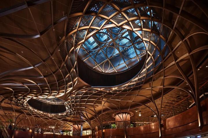 K11 Musea的建筑设计融合了传统与现代元素,其外立面设计从自然中汲取灵感,采用了仿生学和绿色设计理念。商场内外充满了艺术元素,建筑的每一个细节都经过精心策划,创造出一种与自然和艺术融为一体的感觉。商场内部设有多个公共艺术装置、互动展区和艺术品展览区。