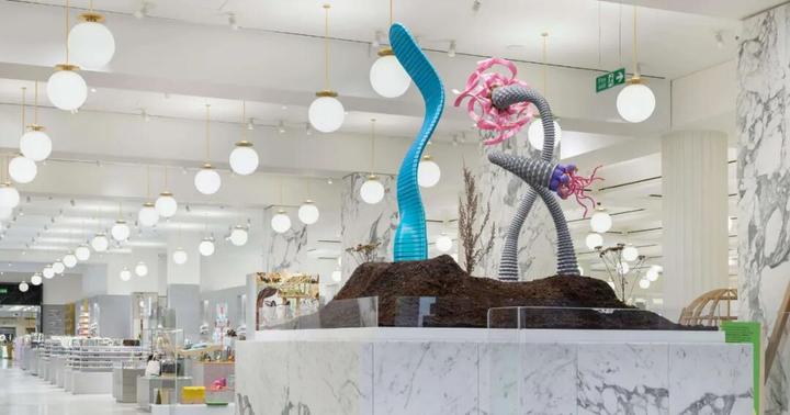 通过与国际知名设计师、艺术家合作,商场经常举办限时艺术展、设计活动或时尚秀。艺术与时尚的对话不仅增强了商场的文化氛围,还进一步提升了商场的独特商业识别性。老佛爷百货香榭丽舍店通过多感官的设计,让顾客在购物过程中体验到不同的文化和艺术氛围。商场的策展式设计打破了传统商场的商品陈列模式,让顾客仿佛置身于艺术馆或时尚秀场。