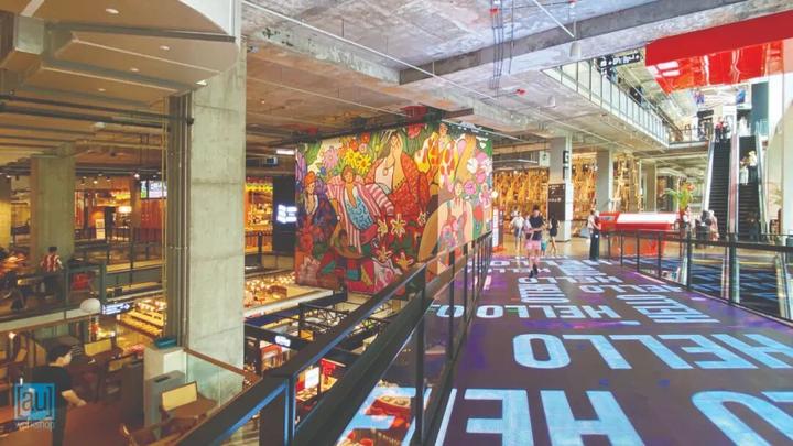 商场可以围绕某一特定主题展开艺术设计,从而形成强烈的品牌一致性。比如可以通过现代艺术与科技元素的融合,构建其“未来城市”的商业形象,强化识别性。