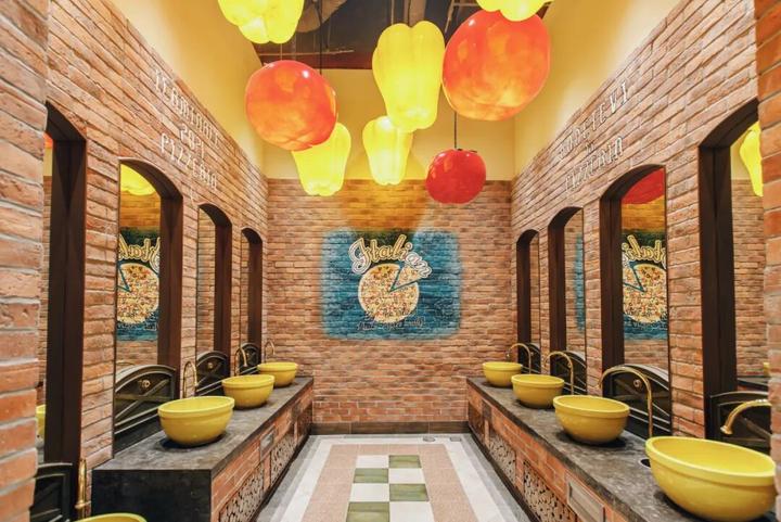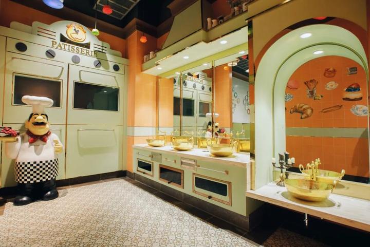 1层(意大利村):厕所以手工披萨店、乡村小酒馆为主题;