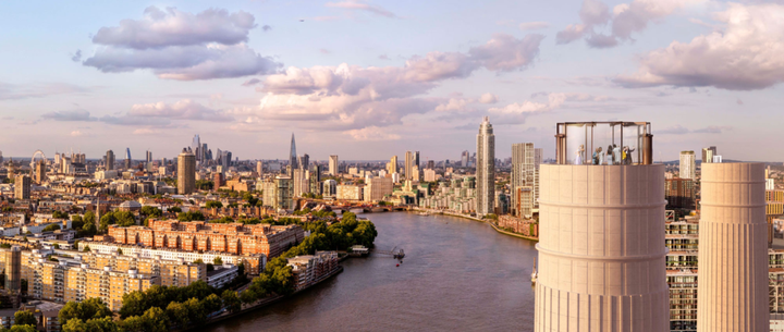 巴特西电站“标志性”的双烟囱改造成高109米的升降机,消费者可乘坐电梯到顶端观赏伦敦全景;