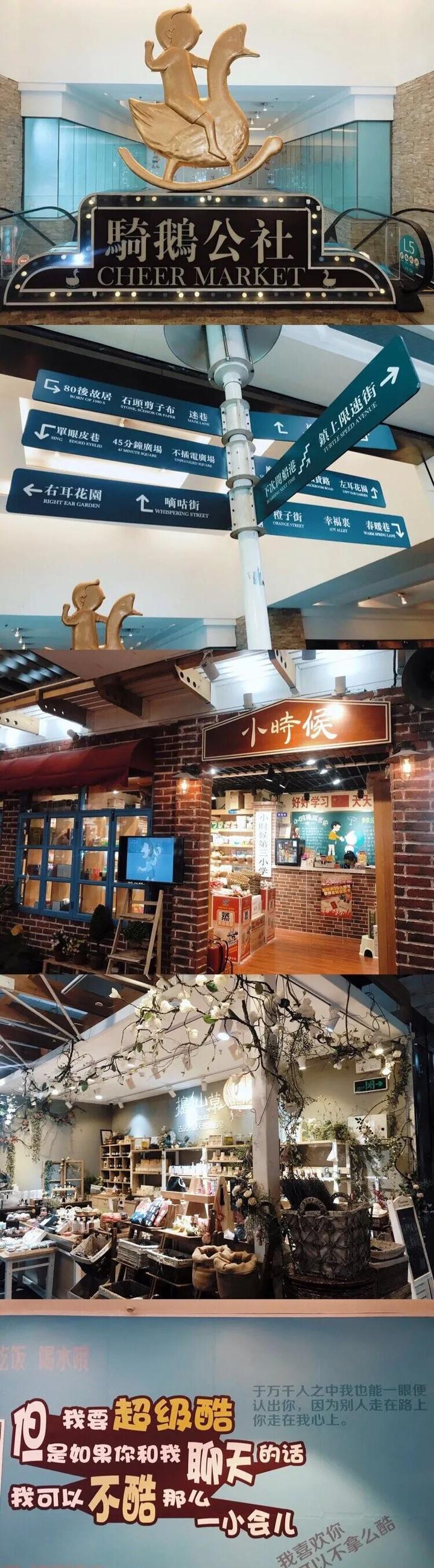 骑鹅公社是我国首个室内创意文化主题街区,将购物中心跨入了场景时代,打造成项目中个性最鲜明,坪效最高的特色业态。