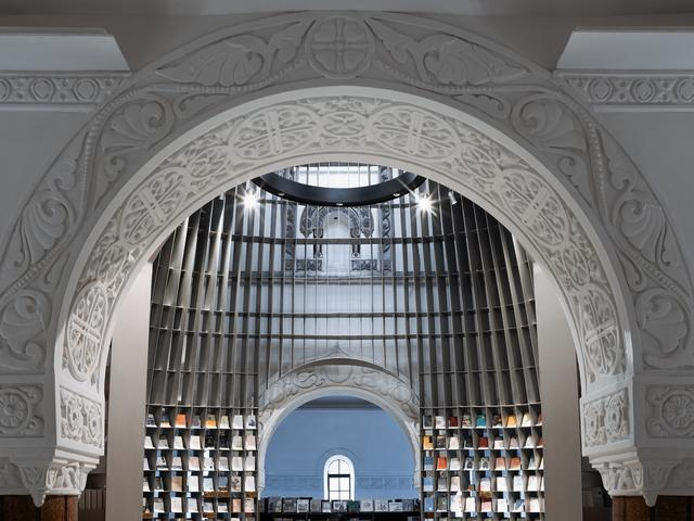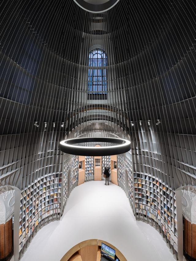 Wutopia Lab以“Church in church”概念在上海历史建筑圣尼古拉斯教堂旧址里用45吨钢铁打造了旧教堂里的新书店——思南书局诗歌店。