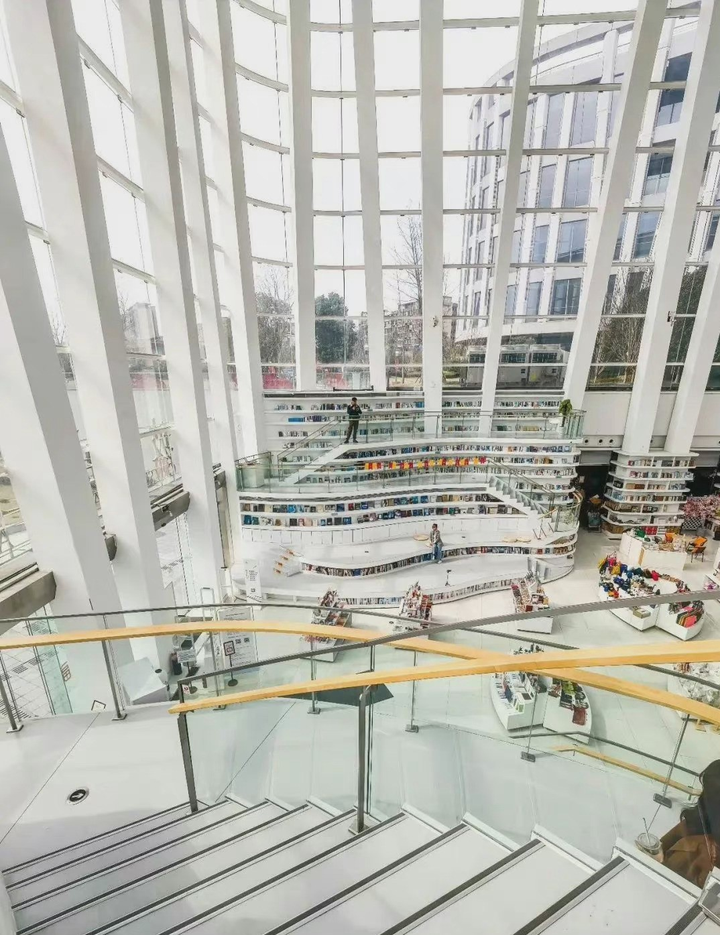 这座全玻璃结构的美妙建筑层高达26米,犹如通透的“水晶盒子”,蜿蜒曲折的陈列设计配以变幻莫测的天光,让书店自带“流量”特质,迅速在沪上新晋网红书店中占据一席之地。书店占地3000余平,以图书为载体,以文化艺术为纽带,打造一个国际文化艺术交流共享平台。