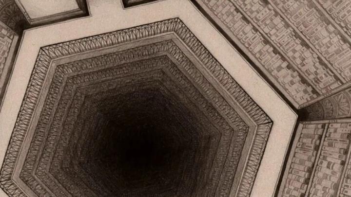 ▲ 博尔赫斯所构想的<巴别图书馆>