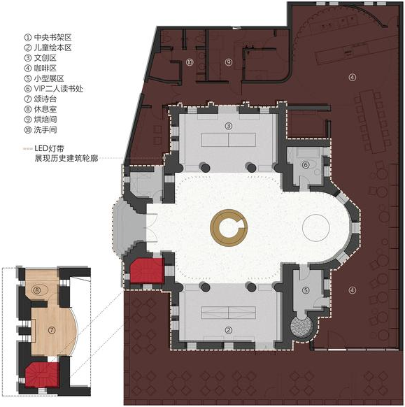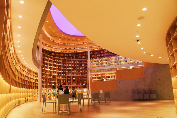 朵云书院旗舰店是个小型的空中文化综合体,它由七个功能区组成,涵盖书店,演讲,展览,咖啡,甜品和简餐等不同功能,总共2200平米,共有60000册书籍和2000种文创用品。