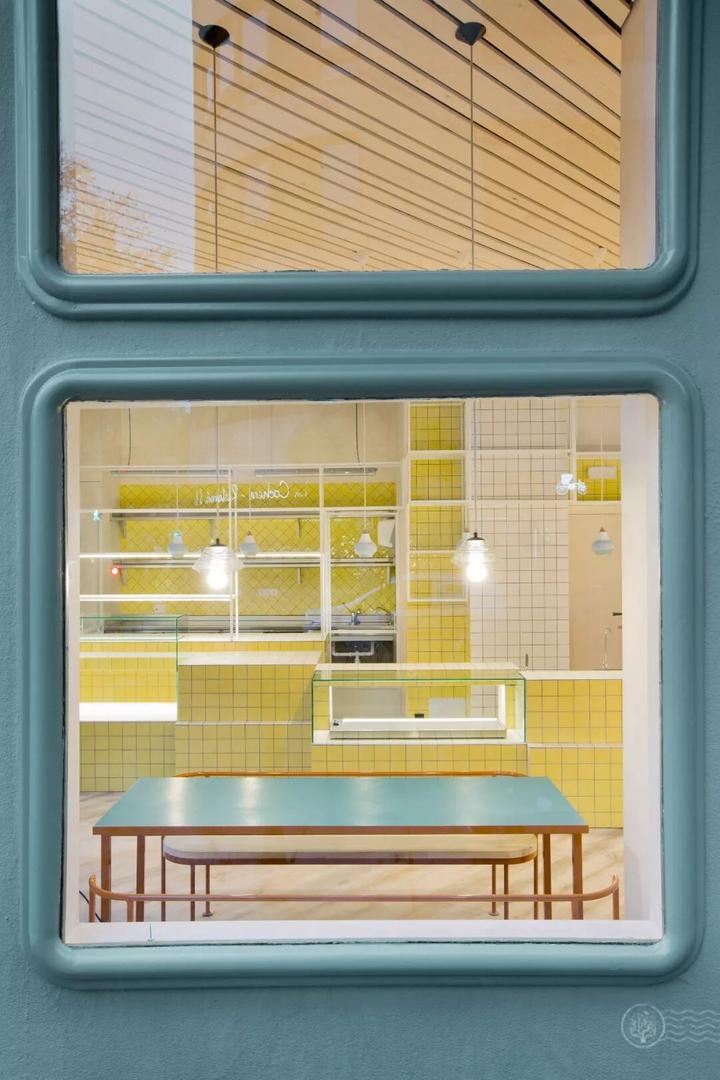 柔和的蓝色窗户边框,设计的如同烤箱一般,十分有趣。