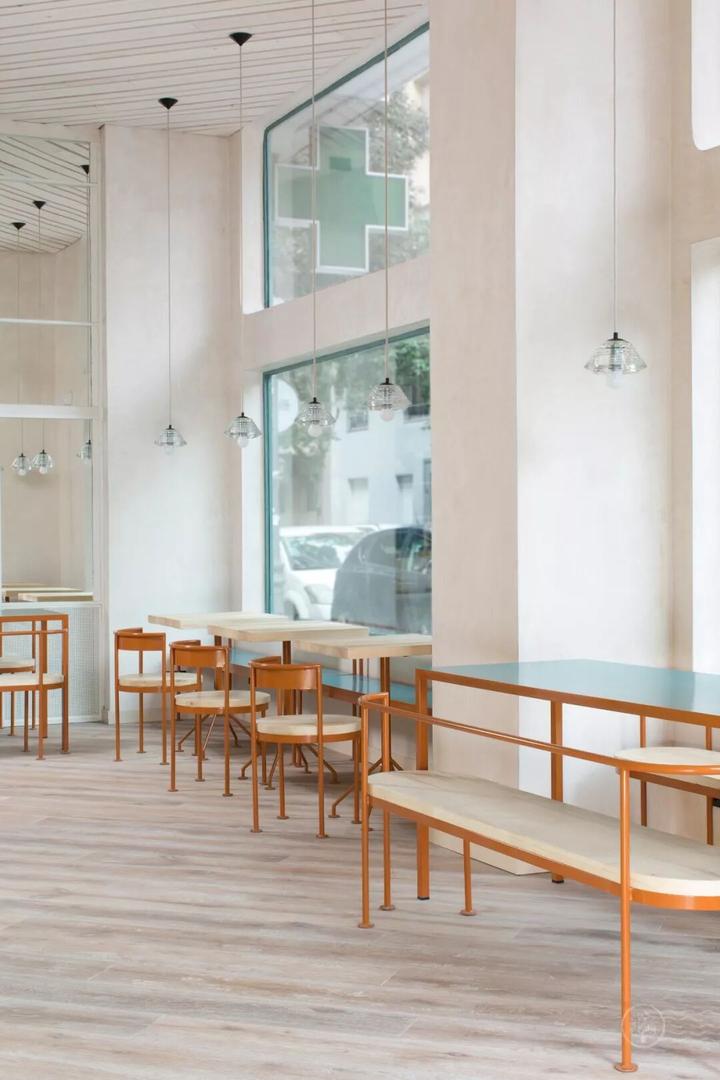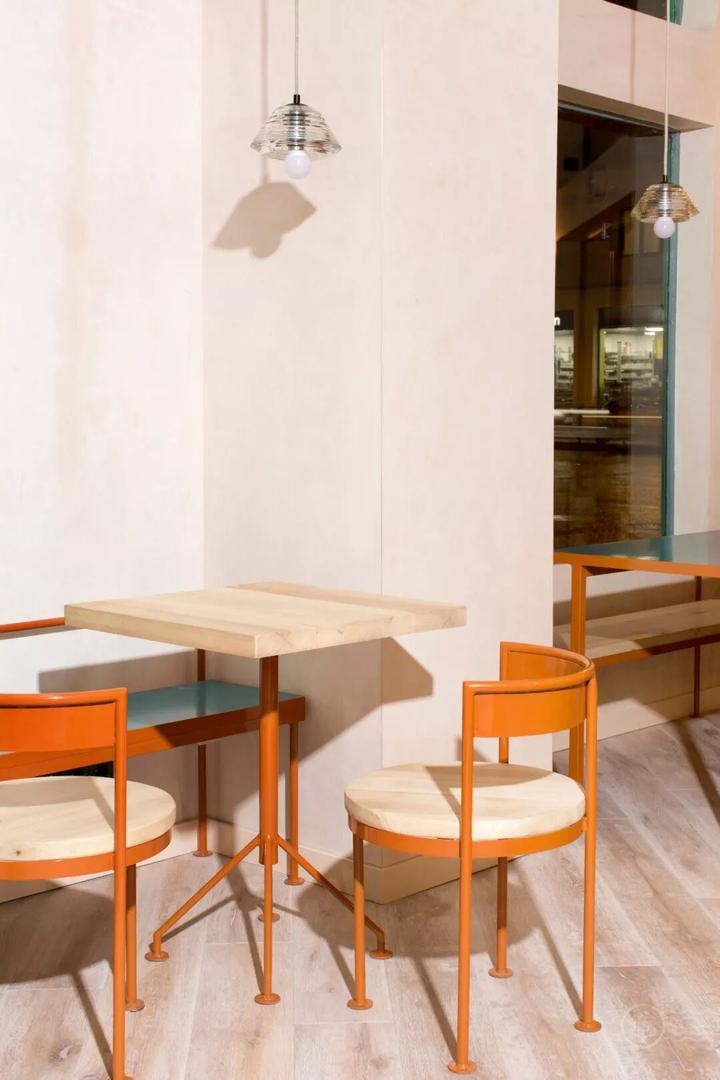 橙黄色的桌椅,为空间注入活力。在阳光下,显得十分温暖