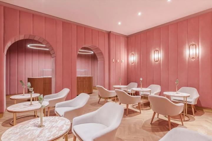 在法语中,Nanan 是“甜品”的意思。白色的外立面切割出三面极简的透明玻璃窗户。透过窗户,里面的粉色世界一览无遗。