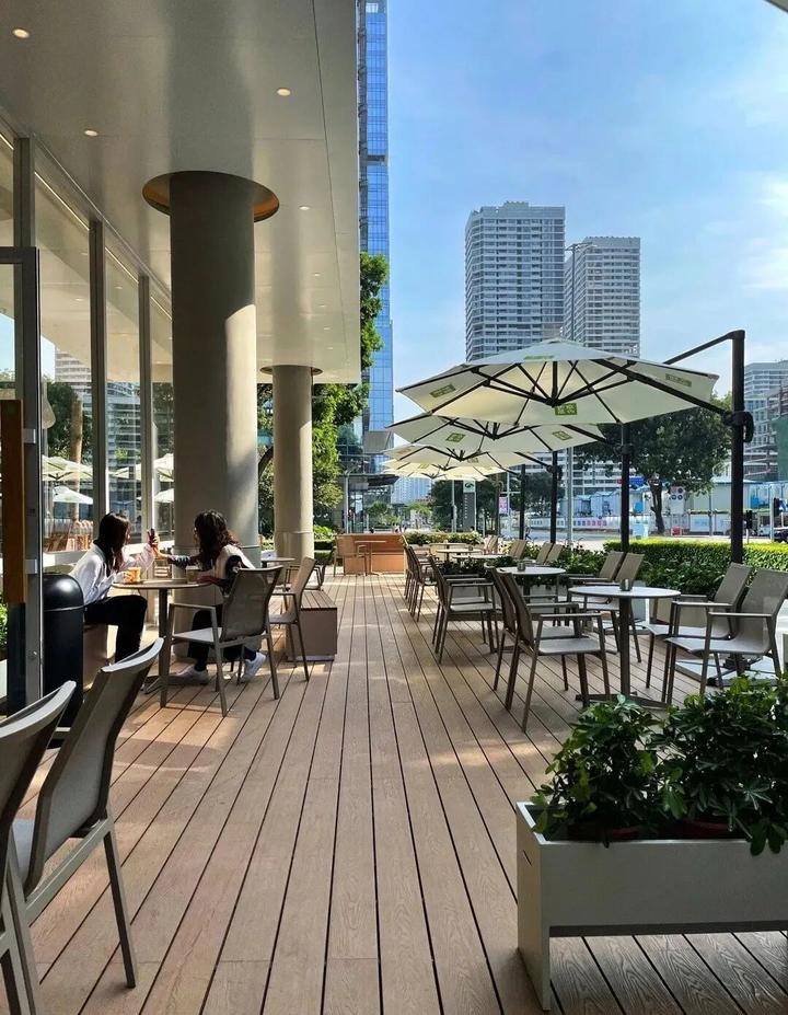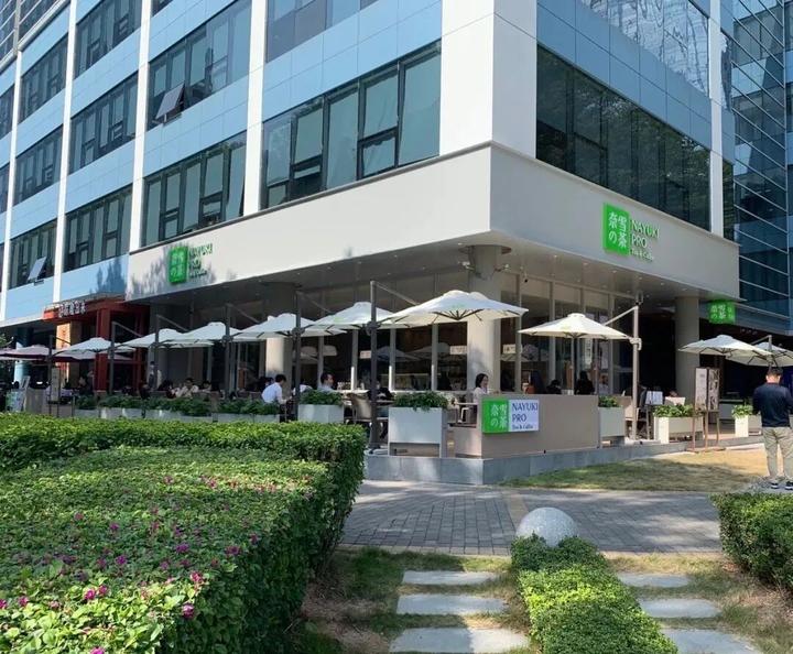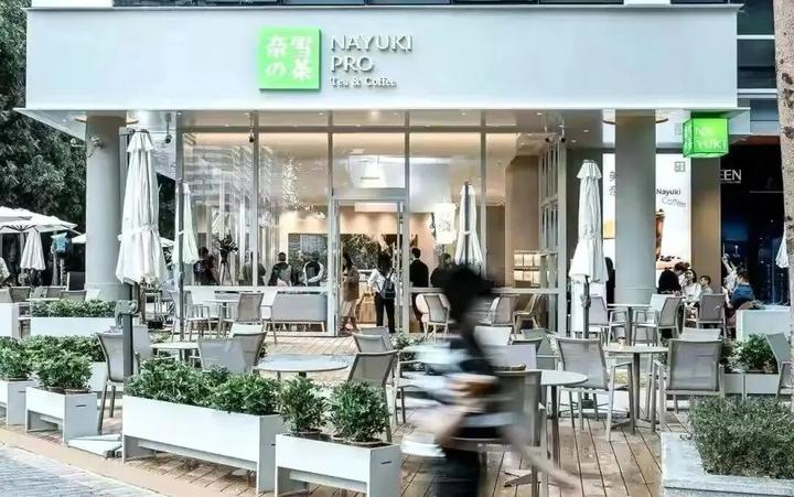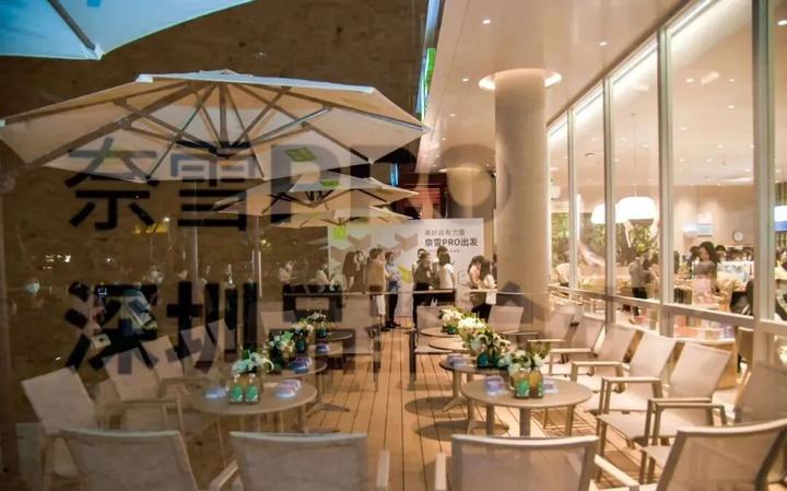 户外区为座位区,都是现代简约的设计。总的来说,奈雪PRO店有突破,然而空间设计还是能看到旧有门店的影子,但其内容和产品的创新之处,却不容忽视。