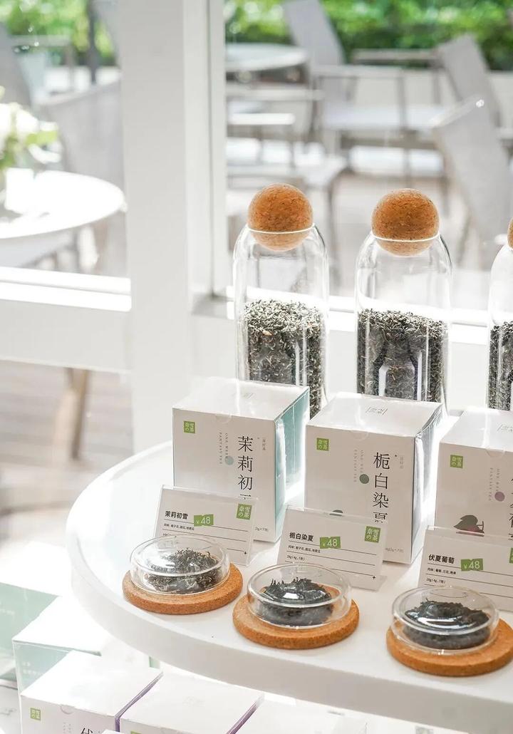 奈雪主要空间设计了零售展览台,用于展示丰富的零售产品,增加消费者的场景化体验。墙面上也展示着奈雪的茶叶零售产品,整个空间似乎都在强调零售场景化。