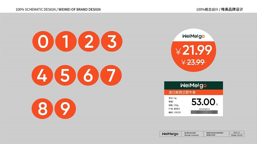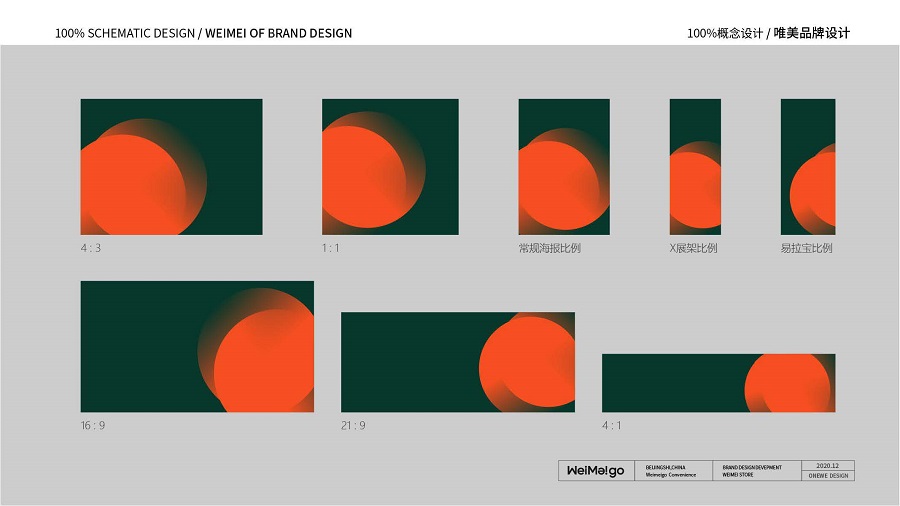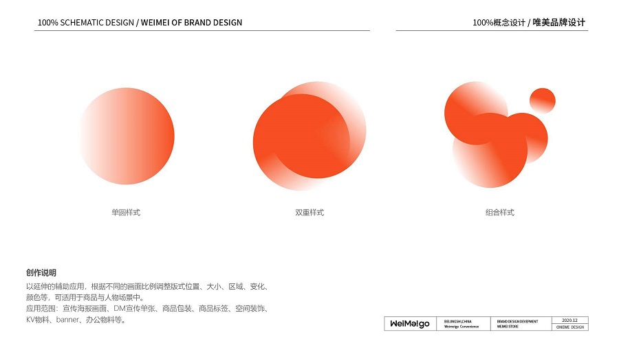 同时,我们以"WeiMeigo"英文字母“i”为圆点,作为核心视觉延伸设计使用。利用圆点设计成光斑效果,作为场景氛围及视觉宣传物料的设计元素。