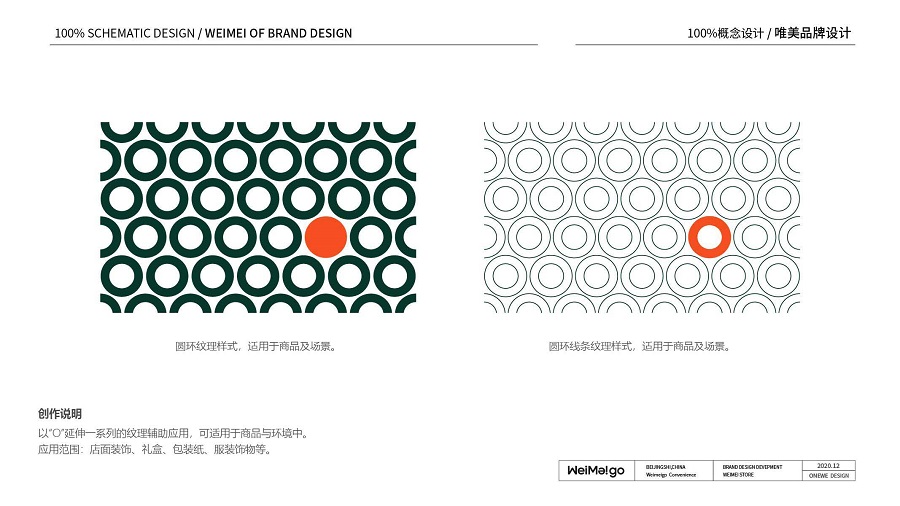 以"WeiMeigo"英文字母"O"作为核心视觉延伸设计使用,运动点、线、面不同的样式来表达画面的视觉表现。"O”在寓意上象征着无限、完整、圆满。在视觉上提取"O"与商品结合,突出产品多样化,同时也表示企业的无限发展与客户的满意之选。