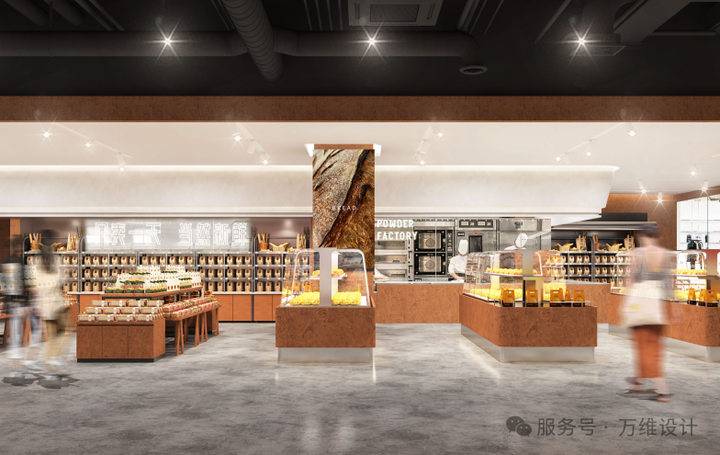 空间以深色水磨石防滑地砖、深色木纹砖为地面基底,复刻工业空间的沉稳质感,搭配白色无机涂料、黑色铝板与镜面铝板的天花组合,在简约中增添现代感;红砖与灰砖柱子自然穿插,直接呼应城市水泥墙、红砖房的工业底色,构建出兼具工业质感与城市温度的基底。轻盈的灯光设计中和了工业风的冷峻,在货架区、就餐区形成柔和光晕,让购物与用餐体验更显舒适,实现硬朗工业记忆与柔软生活场景的平衡。