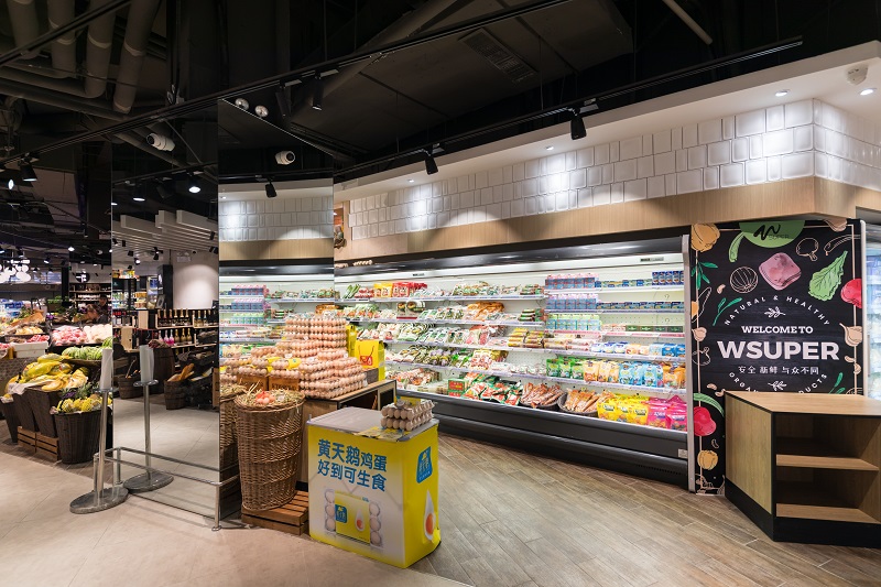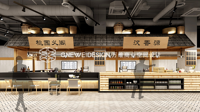 在空间分区上,除了W-Super精品超市的卖场区,我们策略性地在卖场外围开辟了“美食街”区域。