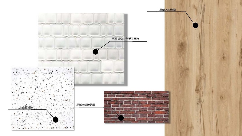 我们选择了老红砖饰面,手工瓷砖等原生态的物料,以及柔和温暖的木质。同时配上多种场景化的、充满热情和幸福感的色彩。