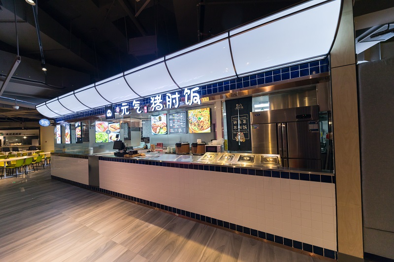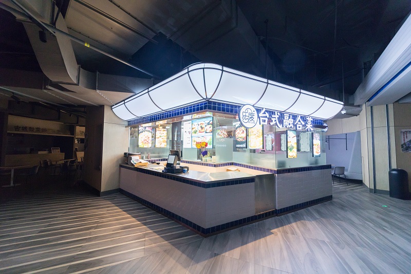 在这个特定的区域,有中式餐饮、台湾式融合菜、牛牌、生鲜等等,白领人群可以在这里解决一日三餐的问题,也可以自己在卖场购买食材,在这里进行加工。开放式的餐饮区域,可以清晰的看到食物加工的过程,这一丝烟火气息也能给都市白领人群带去一丝温暖。