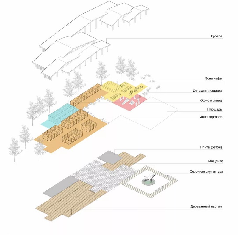 图拉地区农民市场的兴起发展最小的菜市场,市场的原型是一个传统的木制山墙摊位,传统上是在不同的时间进行交易。在菜市场的体系结构中,这些摊位之类的形式被合并到一栋建筑物中,以保持相似性。它象征着基于农民许多利益的统一性和共性。下面万维设计将与大家分享这里的一个菜市场设计案例。