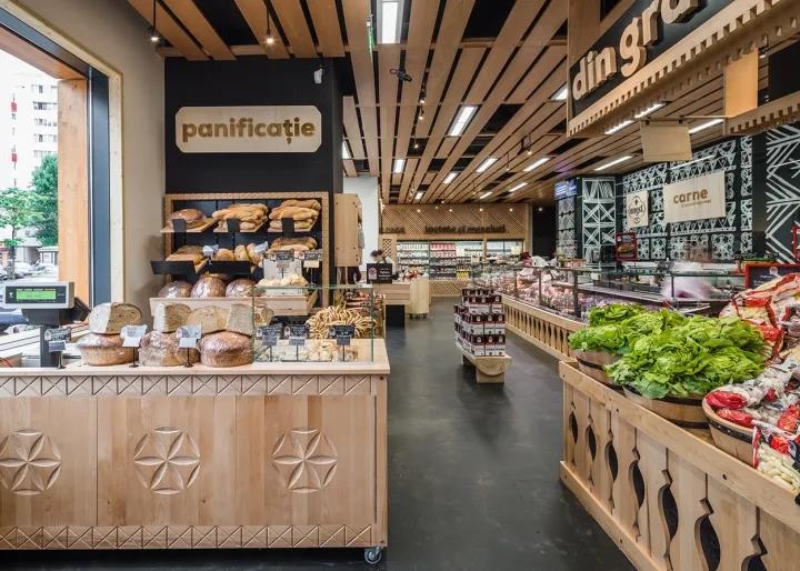 大部分罗马尼亚人的童年是在传统的村庄度过的。在他们的早期生活中,他们有机会发现传统的建筑、雕塑、习俗、古老的食物和香料。因而,这家“罗马尼亚风味”的社区超市设计,突出了传统在每个人生活中的重要性。