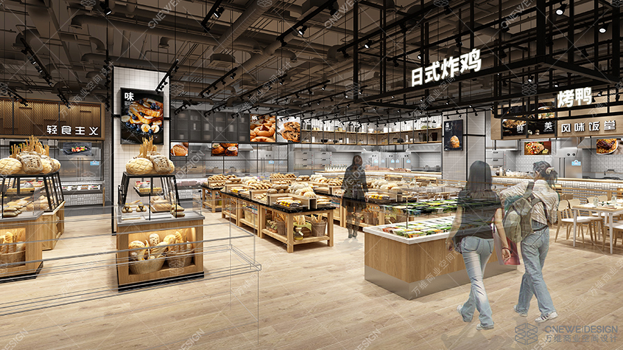 作为天津新城吾悦的主力店,华润万家超市在设计定位上,充分考虑超市与商场共有的消费客群的需求,增加了餐饮区与堂食区的面积,增效消费者的购物体验。
