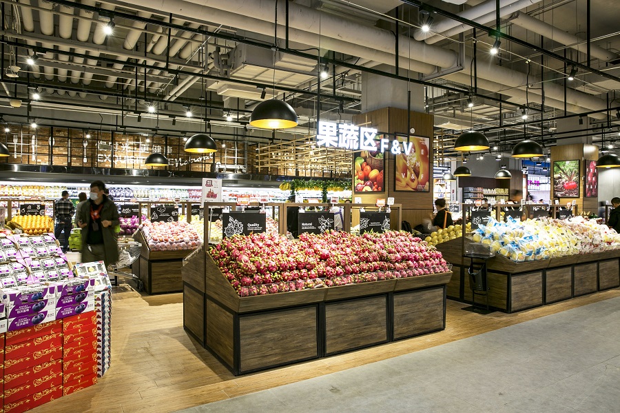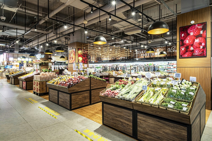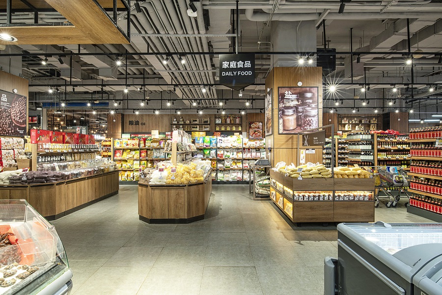 华润万家位于天津新城吾悦广场负一层,其主要客群为家庭群体和青年人群。结合品牌本身特有的“民生”基因,我们希望将它打造成一个高性价比,气质亲民,解决居民一日三餐的老百姓家门口的“大食堂”。