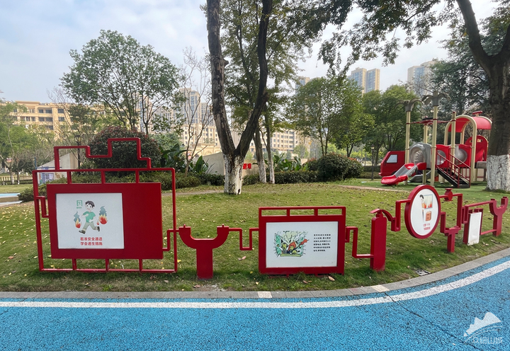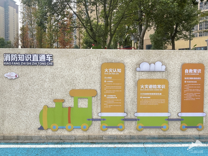潼南消防主题公园改造利用原公园部分场地增设消防器材与设施,巧妙地将消防主题与自然景观相结合,随处可见消防标语、消防卡通人偶、改造为119的公园座椅等消防元素,往来游人在放松休闲的同时潜移默化学习消防知识,体验消防主题内容。