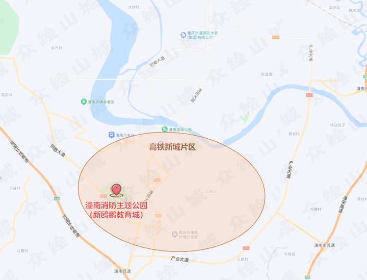 公园周边配套完善,15分钟步行等时圈分布鸥鹏教育城、华夏一品、华夏金都等多个住宅小区,配套嘉年华购物公园、社区底商等商业设施以及巴川中学、潼南消防救援支队和汽车客运总站等公共服务设施,是潼南目前最大的综合型生活居住区。