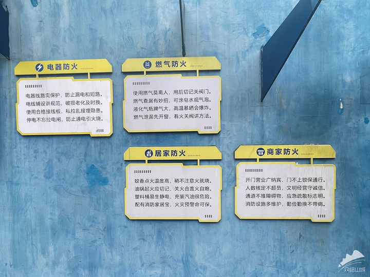 往左来到“防患未然”区域,这里设置了各类提高防范意识的知识要点标识,电气防火、燃气防火、居家防火、商家防火的顺口溜朗朗上口,提醒大家日常生活中要时时警惕风险源头,减少火灾发生的概率。