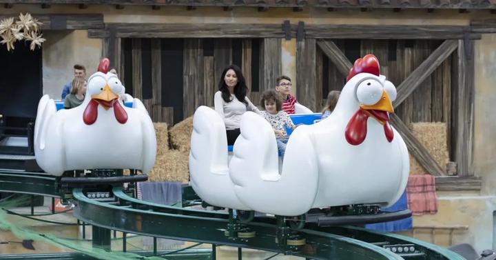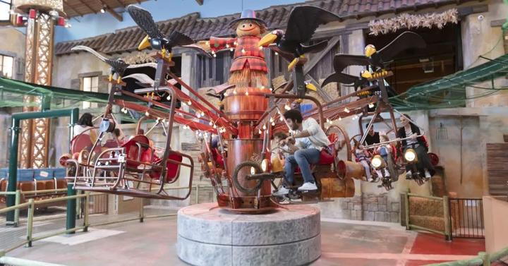 6500平方米的儿童游乐园则以月光农场为主题,拥有15个极富童趣的骑乘和游乐环节如稻草人和乌鸦旋转木马、蜜蜂碰碰车、母鸡观光车等。