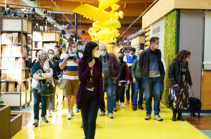 9000平方米的购物区不仅有150多家食品企业入驻,还有具有意大利传统特色的农夫市集和特色小店、意大利本土著名的自行车、雪茄、书店和有机护肤品牌等;值得一提的是,在Fico你可以踩着特制自行车购物哦!