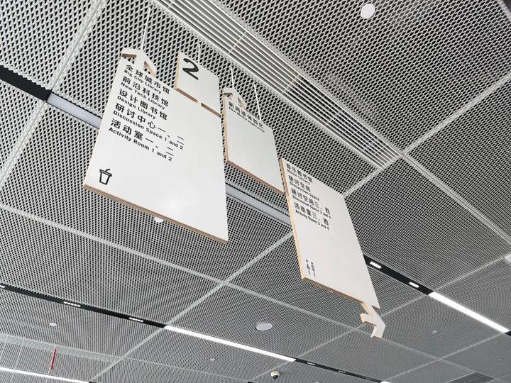 我们用竖向条纹来模拟书口纸张层层叠叠的感受,用来填充地图、建筑外立面标识及层显等大尺度标识。室内标识以木材质为主,侧面木板纹理如同书籍的书口,体现阅读的温度,展示出上海图书馆作为公共文化建筑的艺术氛围和人文气息。此外,我们在室内指引中还结合了上图馆藏经典进行展示。在突出上图特色的同时,起到提示所处图书分区的作用。