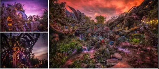 迪士尼在动物王国重现了《阿凡达》超级逼真的实景,根据原影片故事,并进行了延续,把主题区命名为“Mo"ara山谷”,采用的故事背景时间线是影片故事的几百年后,游客身份则顺理成章的成为了前去潘多拉的旅行者。