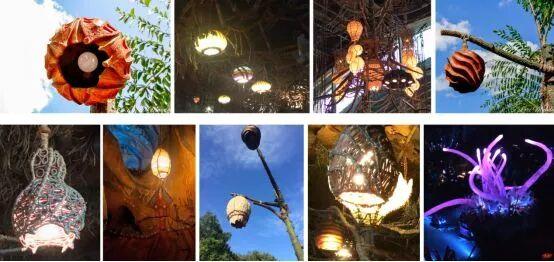 除了有特定表演需求的灯外,不管是发光的道具还是地面照射树冠的地埋灯,都应该做到隐藏光源,为了避免游客直视光源造成不舒适感以及保留包装整体感,做到见光不见灯。