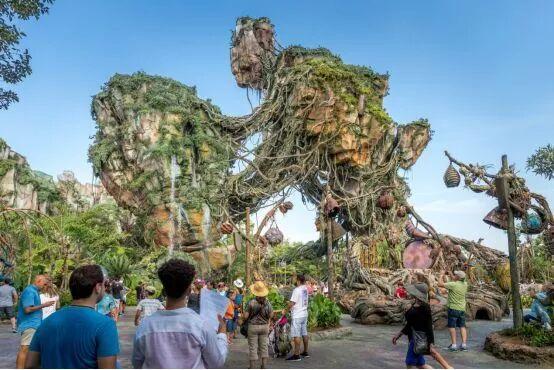 这里重点拿迪士尼动物王国2017年5月份新开放的阿凡达世界举例,作为迪士尼最新的主题区,它确实刷新了乐园“沉浸娱乐”的高度,悬浮山、发光的植物等精致的包装都展示着建设者的雄心:那就是打造一个真实的潘多拉世界。