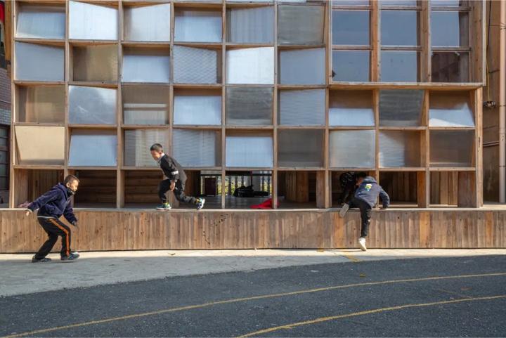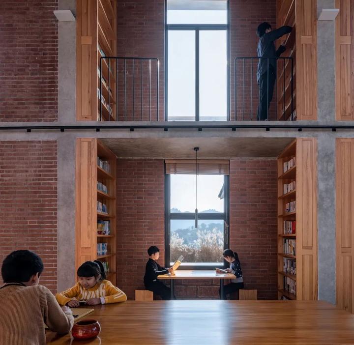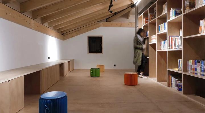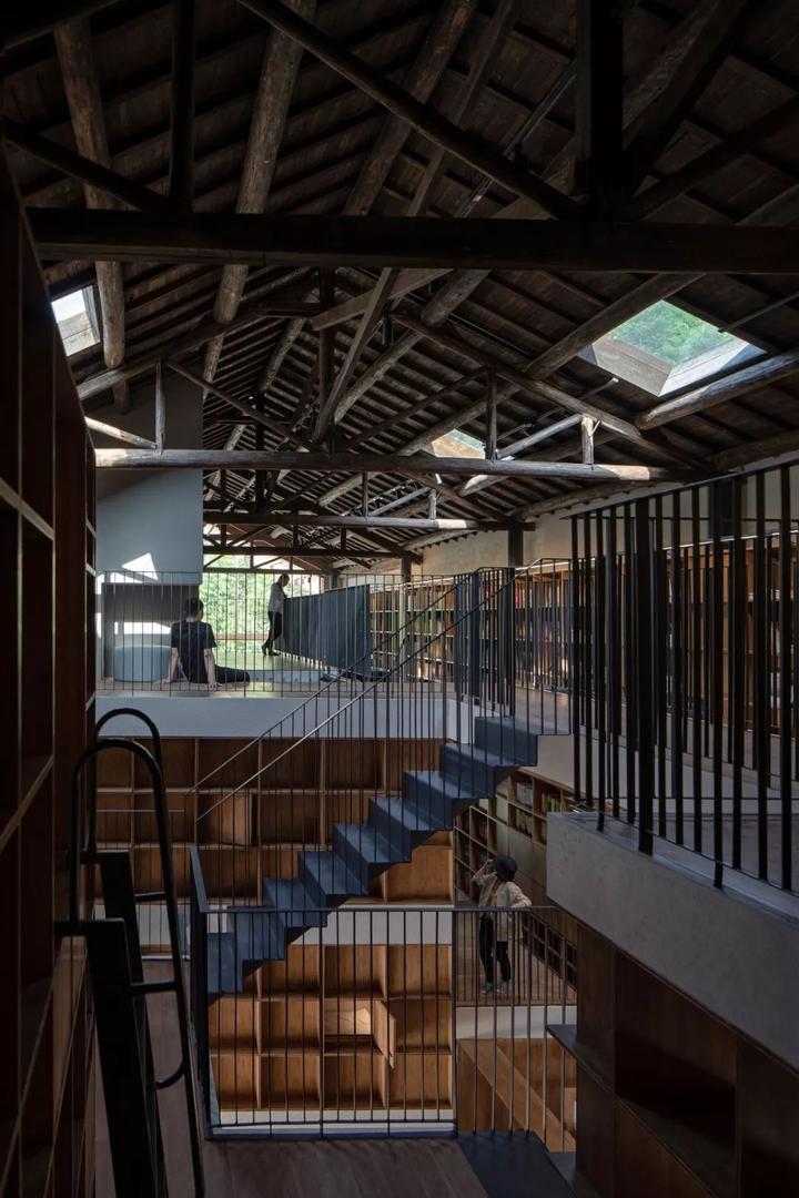 试想象,在一个传统的木构房屋中嵌入了一个无止境的楼梯,一个由踏板组成的、无限延伸的环。为了增加神秘感,这个楼梯并没有目的地,它就是目的地本身。建筑的外墙由书架和可以俯瞰庭院的窗户组成的矩阵组成。坪坦书屋不应被定义为一个传统的儿童图书馆,而是一个可以让孩子们一边读书一边玩耍的地方。这也是中国乡村图书馆的新范式。