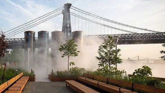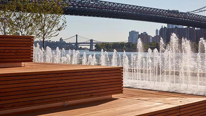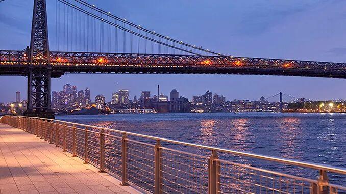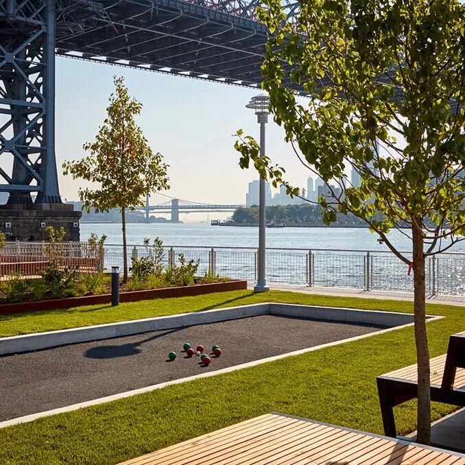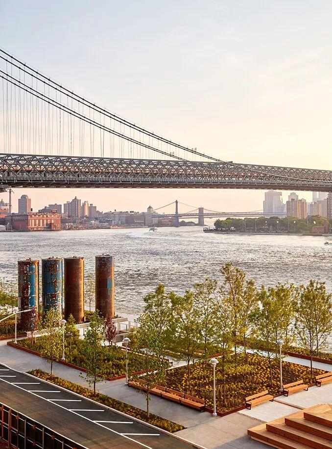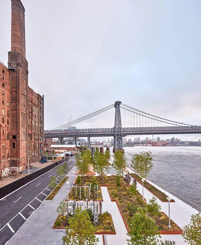 1200英尺长的滨水休息区是一条沿着东河,能看到曼哈顿天际线和威廉斯堡大桥优美景色的连续的步道。